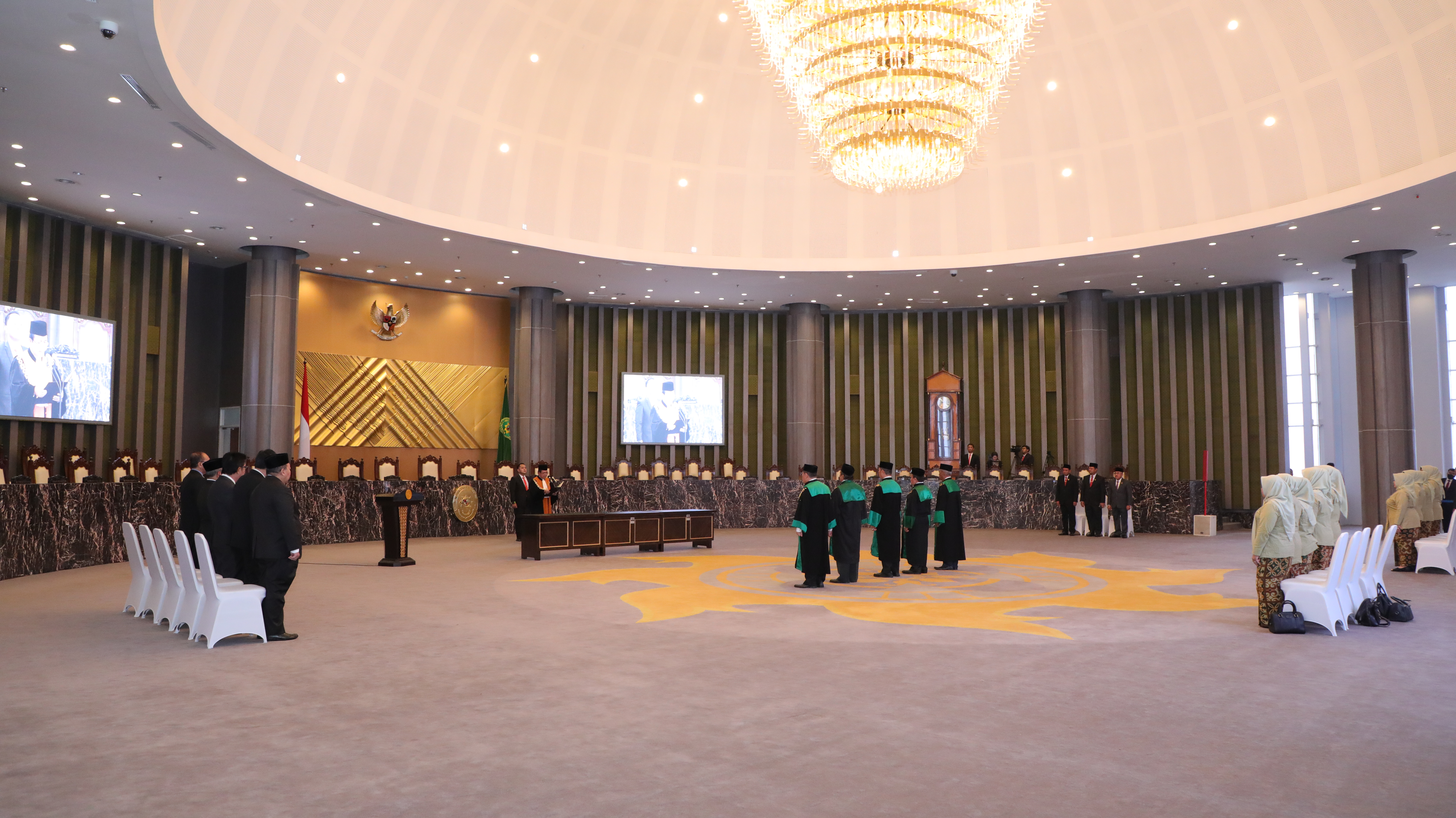 Acara pelantikan ini, juga dihadiri oleh Wakil Ketua Mahkamah Agung Bidang Yudisial, para Ketua Kamar Mahkamah Agung, pejabat eselon I dilingkungan Mahkamah Agung, Ketua Umum Dharmayukti Karini, Ketua Dharmayukti Karini Mahkamah Agung, serta para undangan lainnya. (Humas).