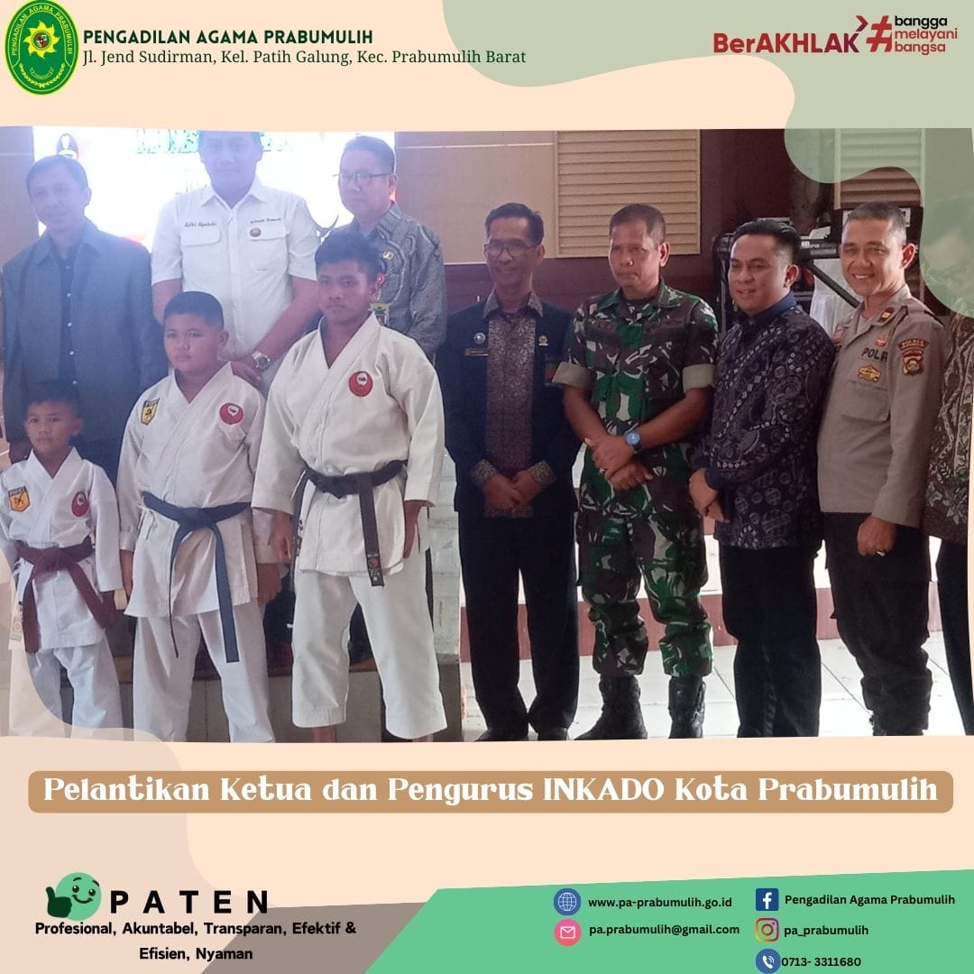Bertempat di Gedung Kesenian Rumah Dinas Walikota Prabumulih Panitera Pengadilan Agama Prabumulih, Bapak Ahmad Marzuki, S.Ag.,M.H menghadiri acara Pelantikan Ketua dan Pengurus Indonesia Karate Do (INKADO) Kota Prabumulih. (Humas PTIP).