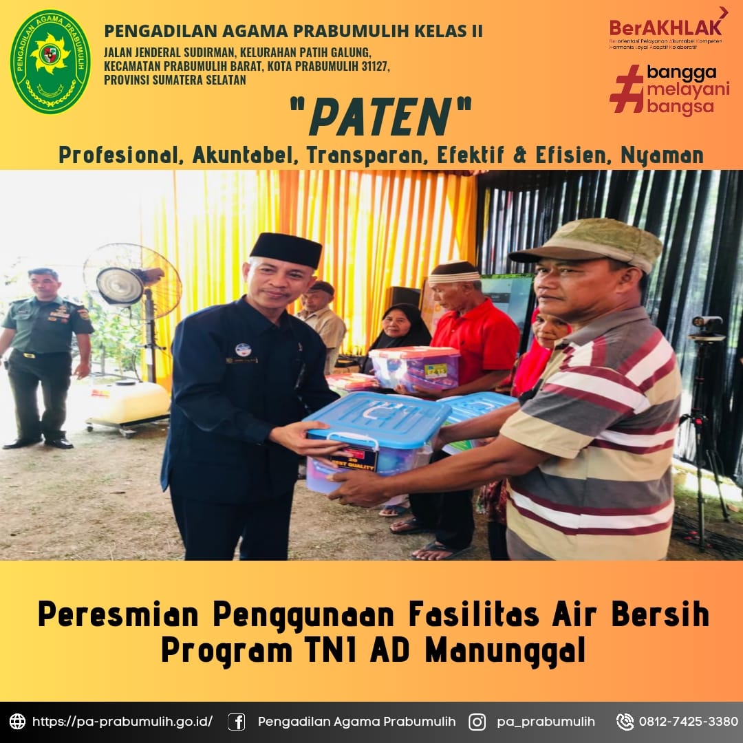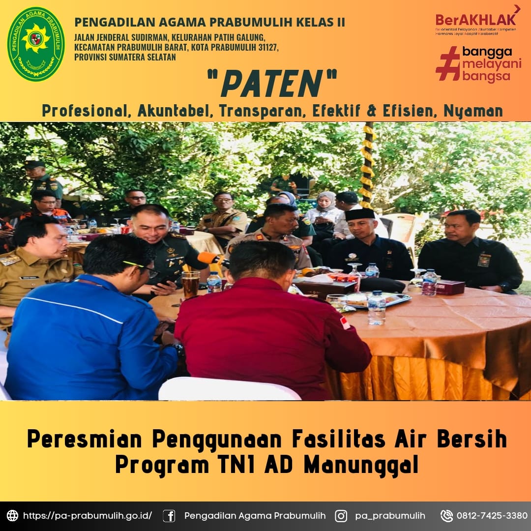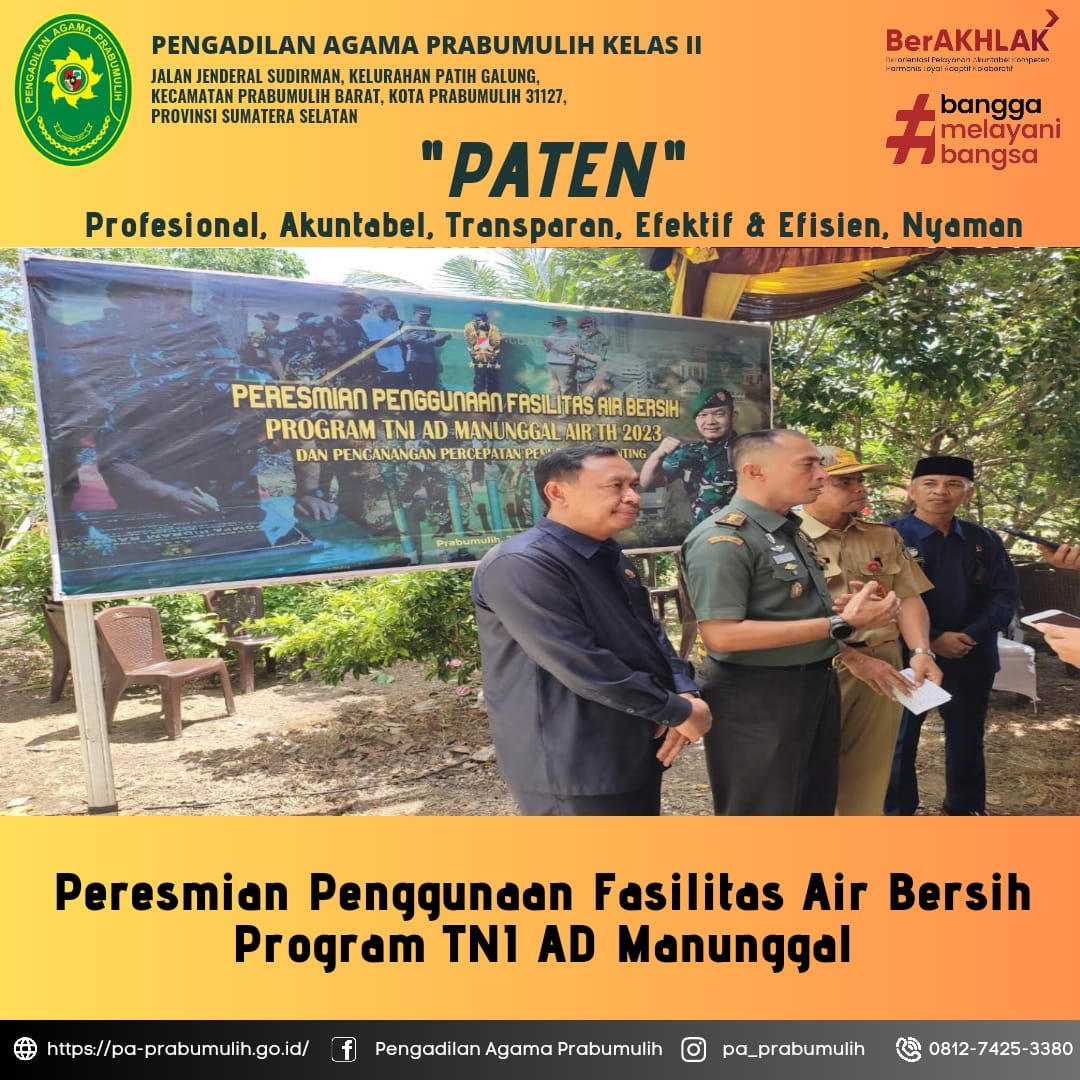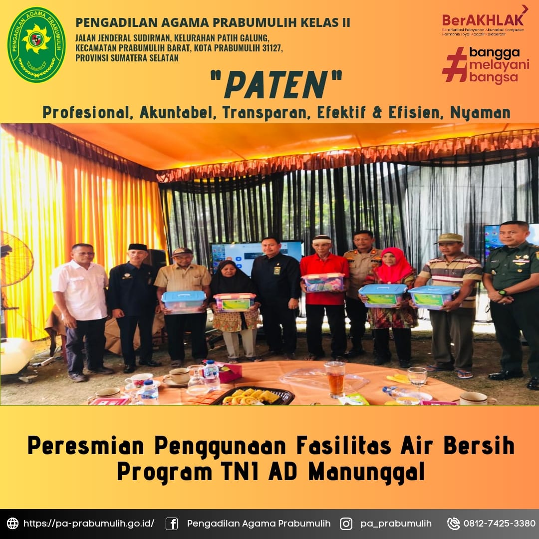Ketua PA Prabumulih Menghadiri Peresmian Penggunaan Fasilitas Air Bersih Program TNI AD Manunggal